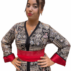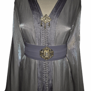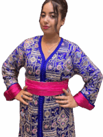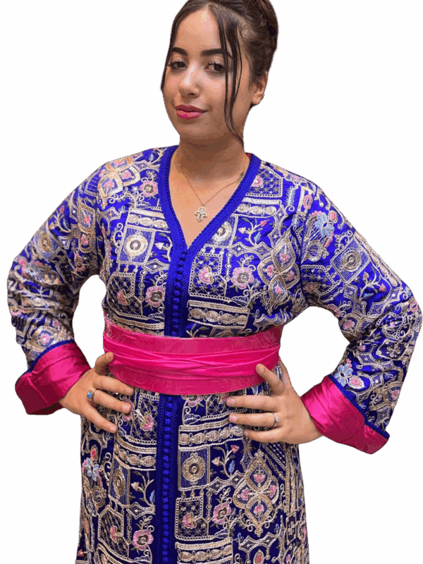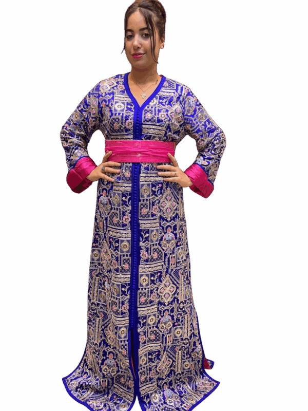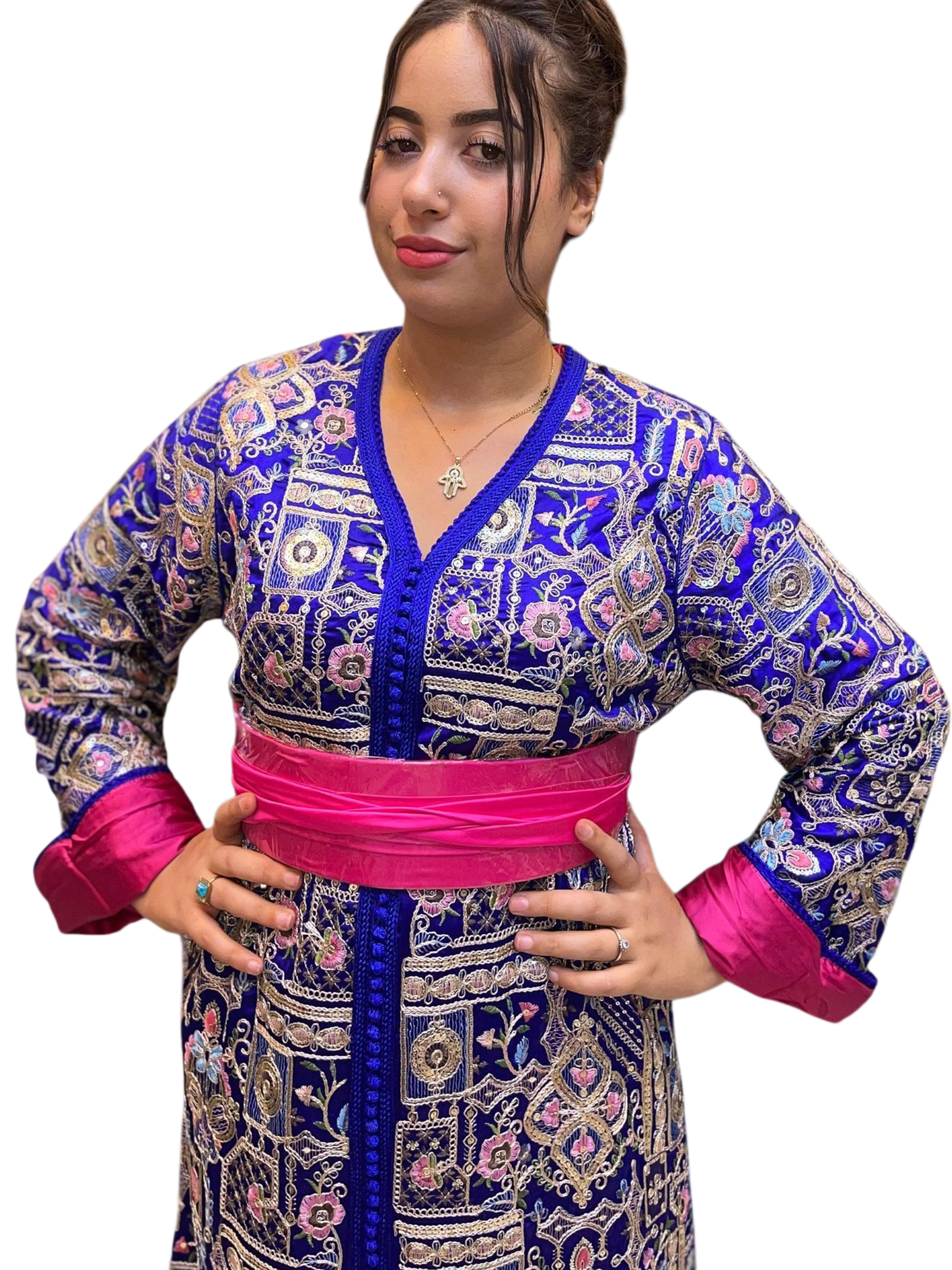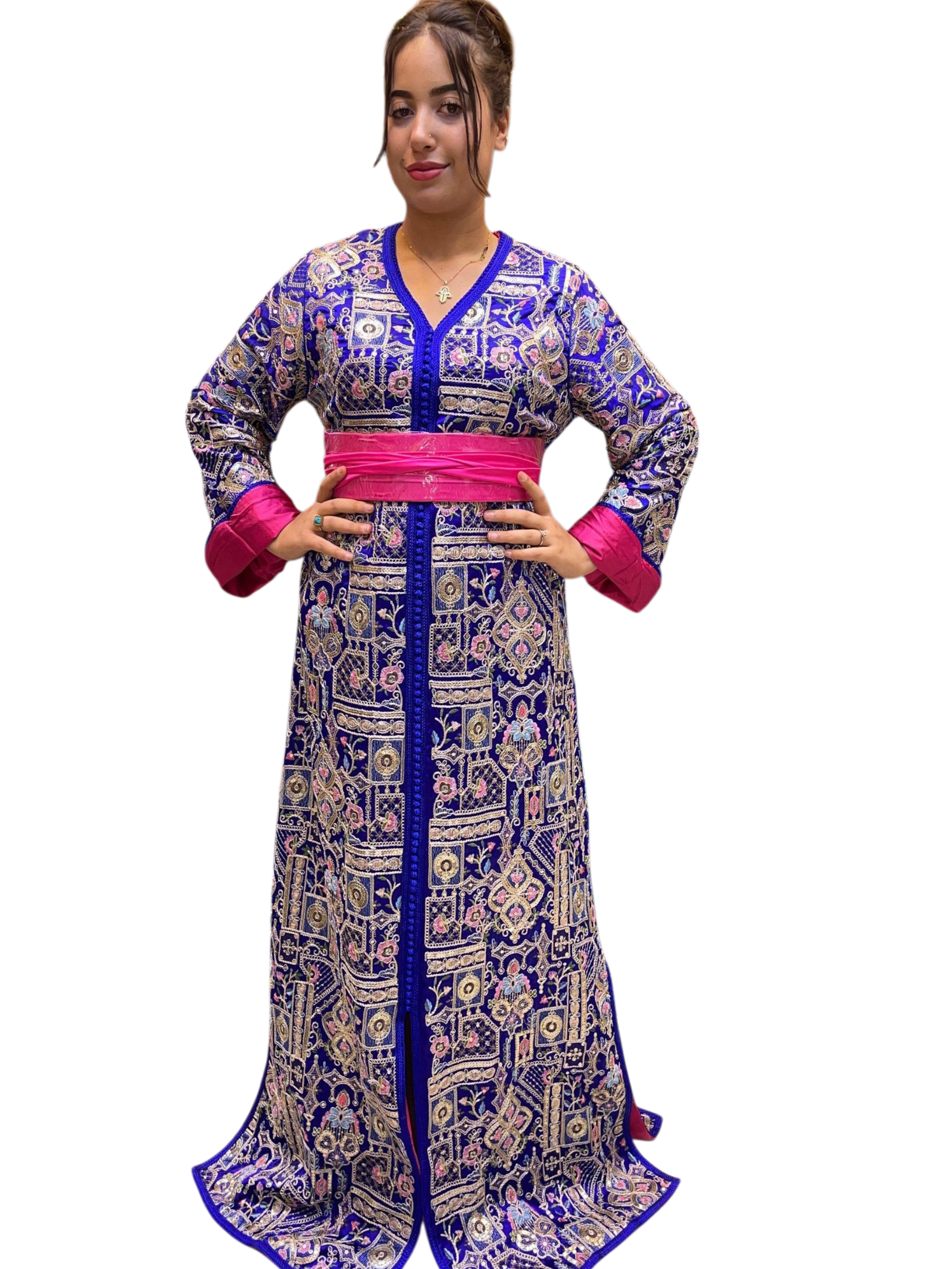 Elegante gevoerde caftan sari – koningsblauw met riem ✨
