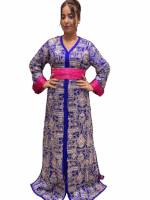 Deze luxueuze caftan in koningsblauw combineert de klassieke elegantie van een sari met het comfort van een moderne pasvorm. De caftan is volledig gevoerd voor een mooie, soepele valling en extra draagcomfort.
