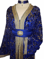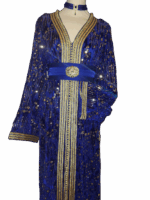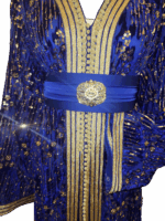 Deze koningsblauwe takchita straalt pure elegantie uit. Rijkelijk versierd met verfijnde pailletten en delicate kraaltjes, die prachtig schitteren bij elke beweging. Een tijdloos ontwerp dat luxe en traditie perfect combineert, ideaal voor speciale gelegenheden.