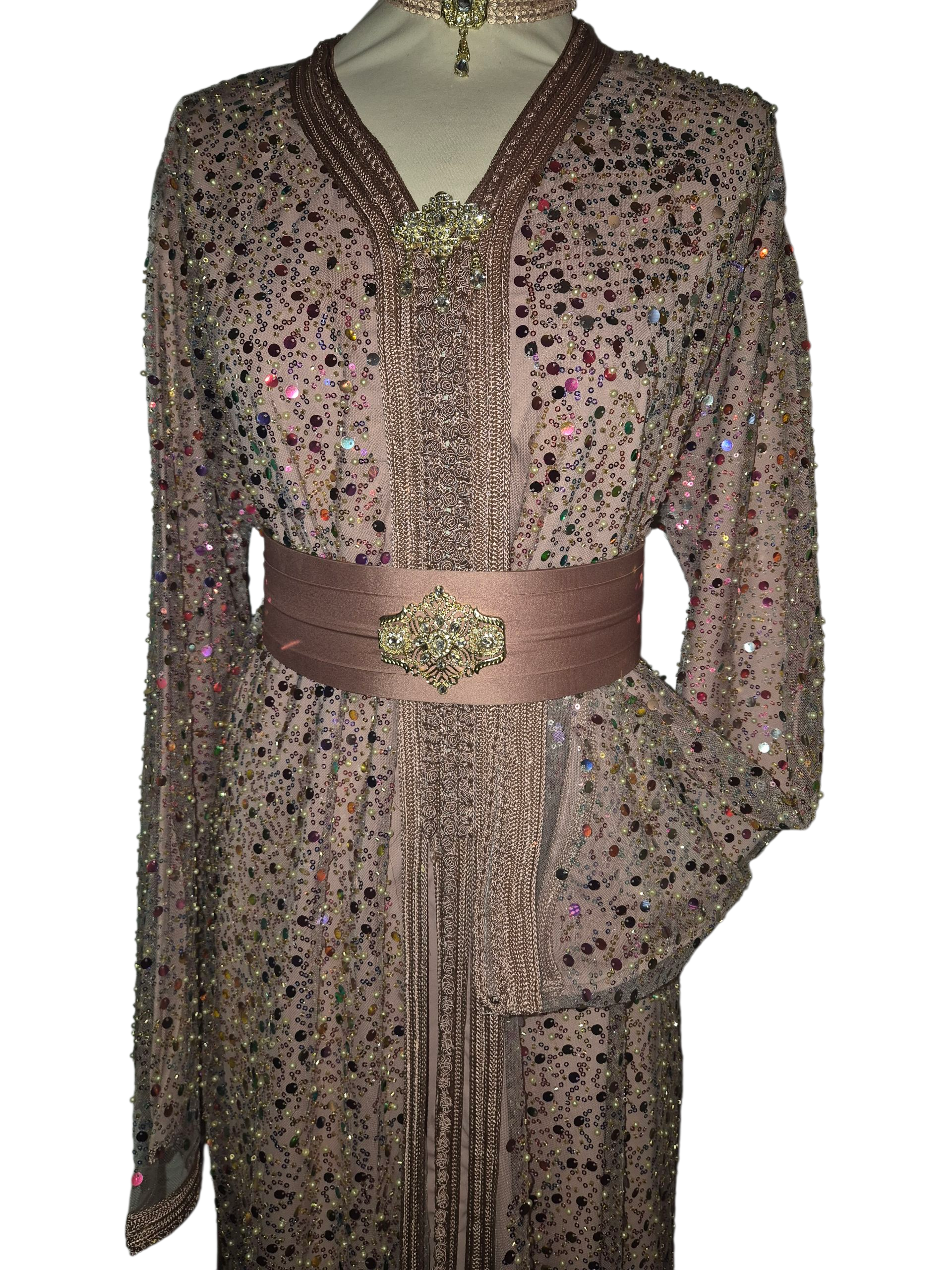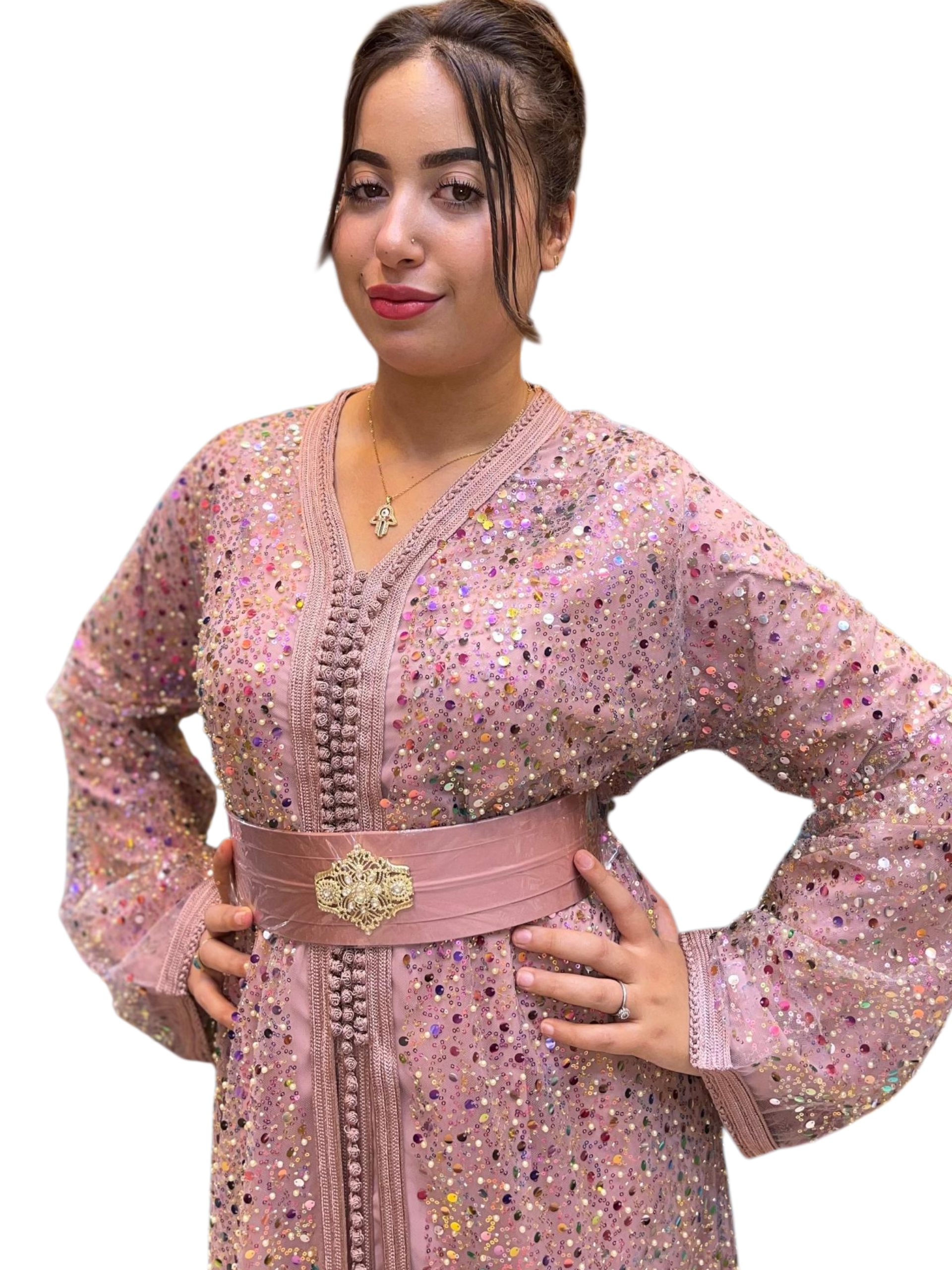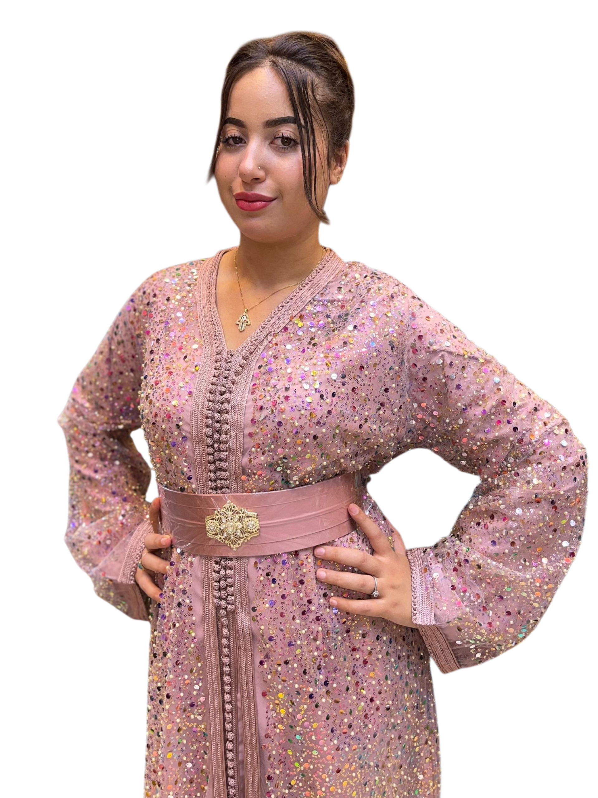Home Dameskleding Takchita Nieuwe items Takchita lila roze pailetten + riem