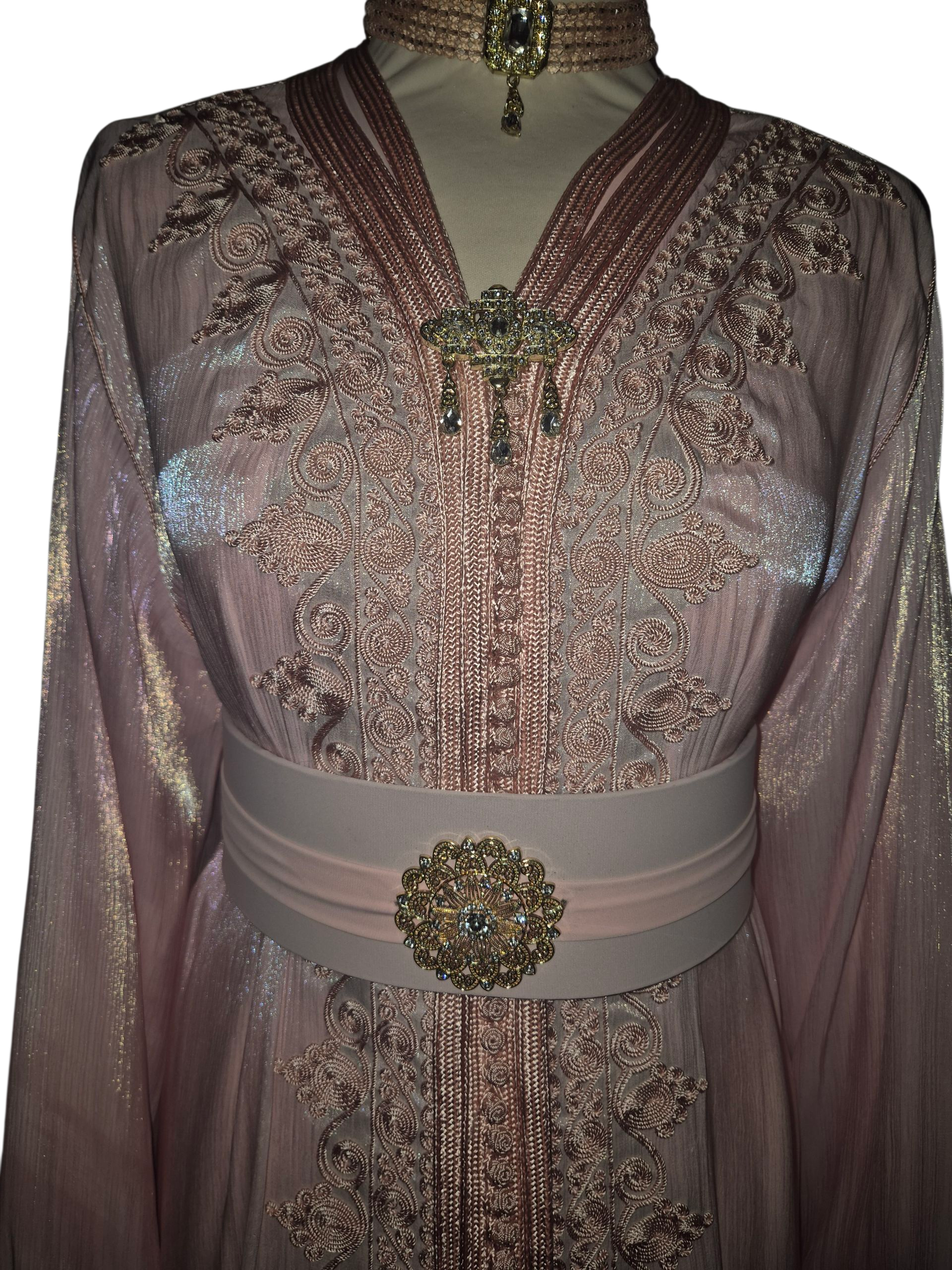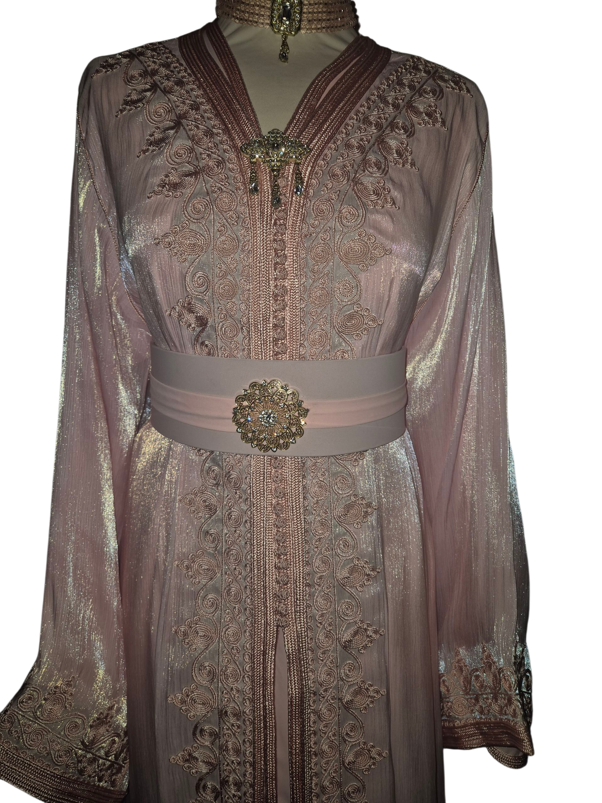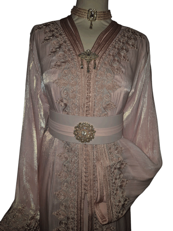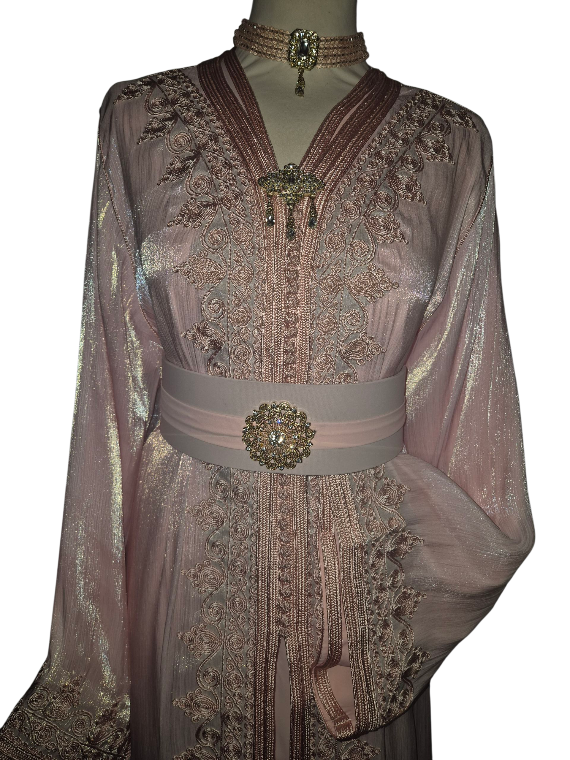 Ontdek pure zachtheid met deze babyroze organza jurk. De luchtige stof danst bij elke beweging en straalt een subtiele glans uit in het licht. Delicate details en een verfijnde snit maken deze jurk de perfecte keuze voor een feestelijke gelegenheid — een tijdloze mix van elegantie en dromerige charme.